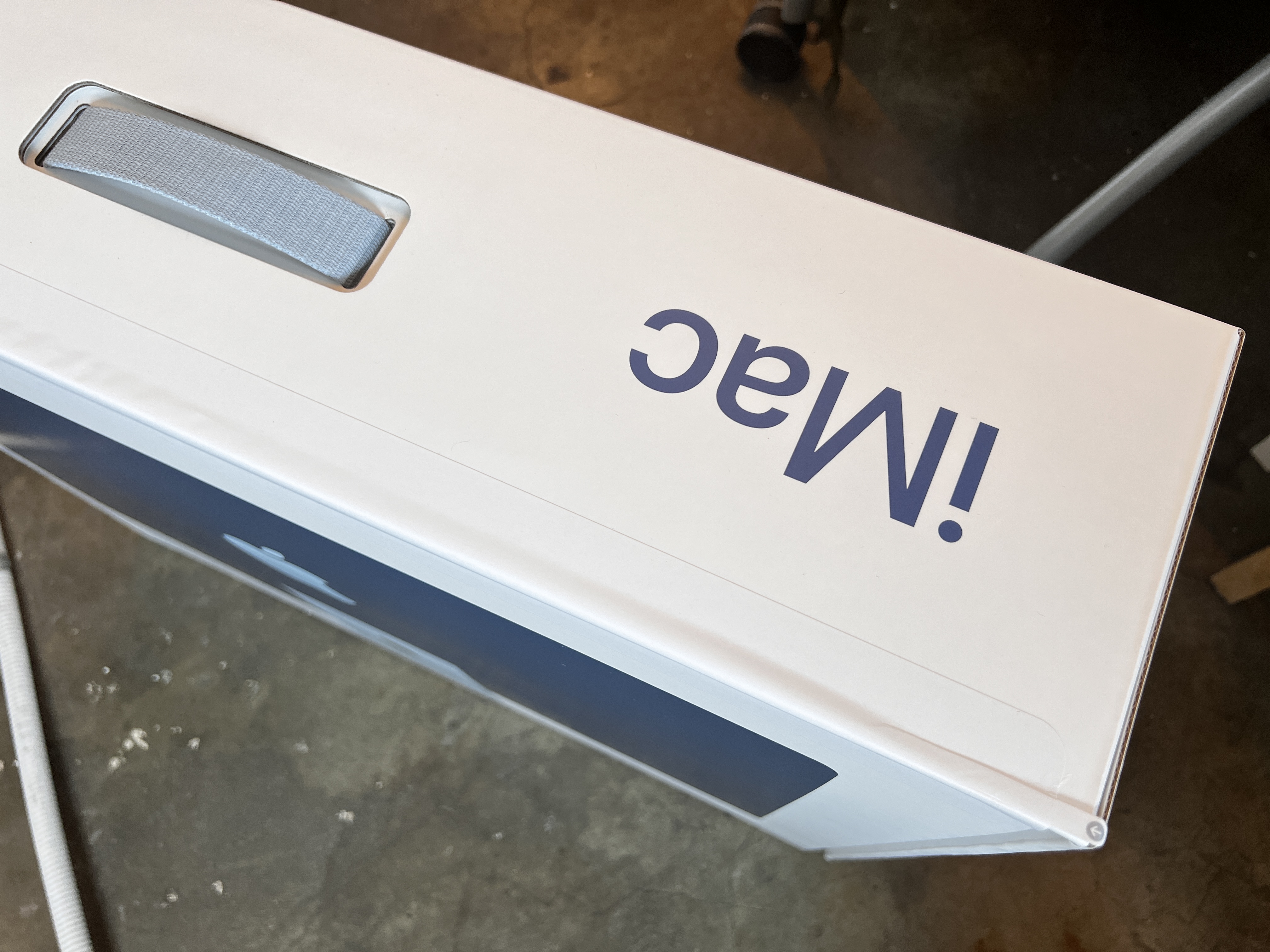 아래쪽에 있는 박스가 밑으로 열리면서 아이맥을 꺼낼수 있는 상태가 된다.