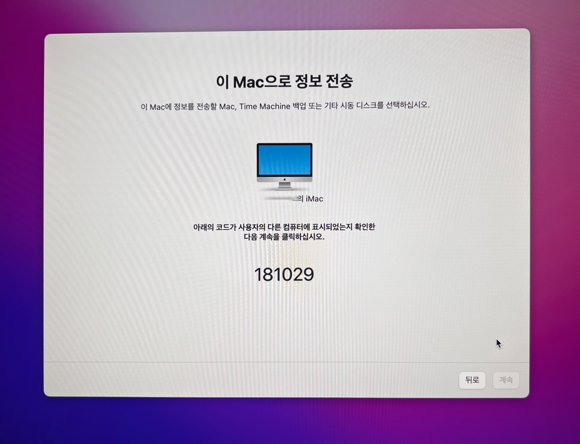 연결하려는 아이맥이 맞는지 확인하는 코드번호가 양쪽 아이맥에 뜨고