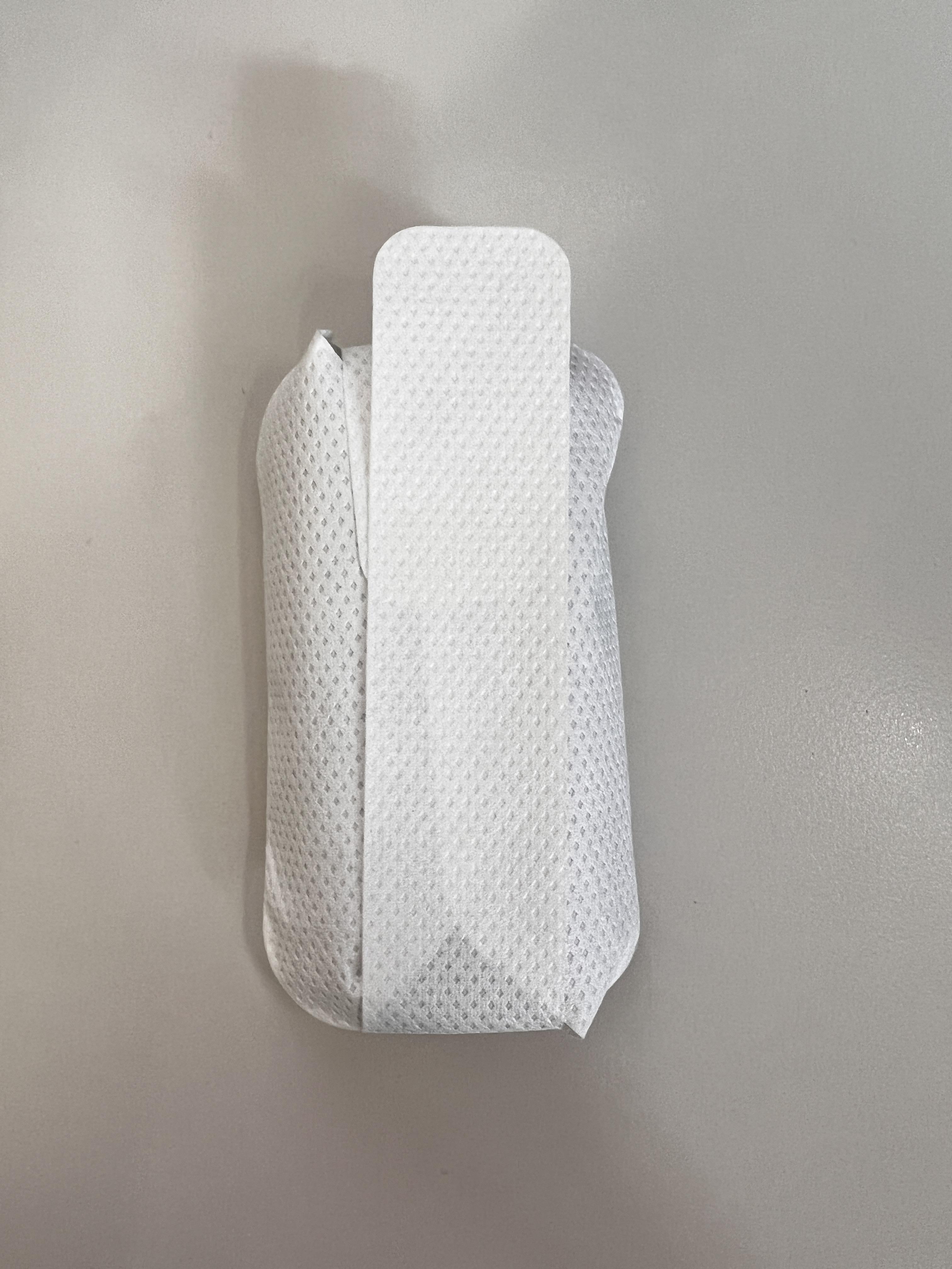 바닥에 눕힌뒤 화살표가 인쇄된 양쪽 부분을 옆으로 밀어주면