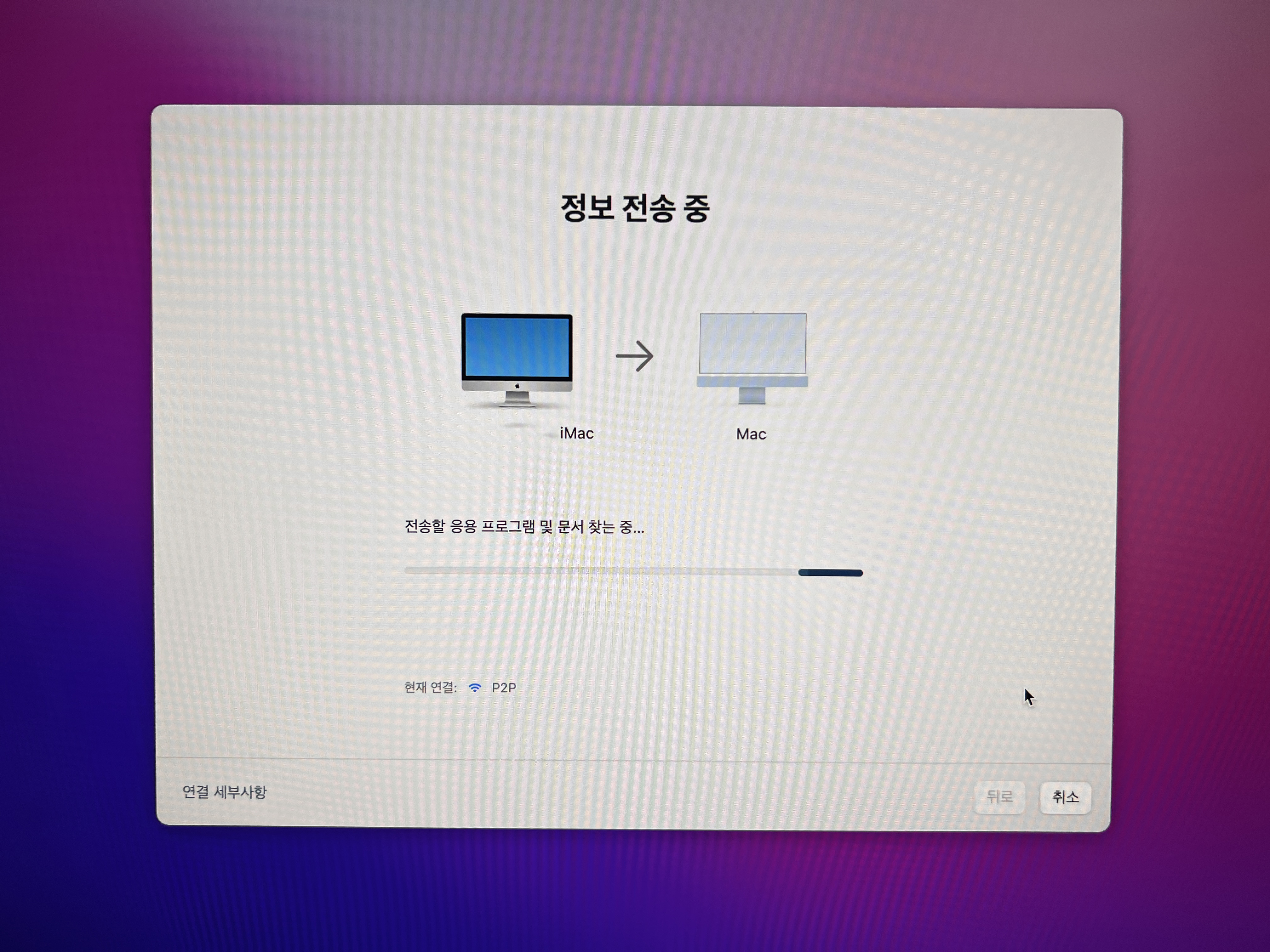 기존 아이맥이 HDD라서 더 오래걸리는것 같다.