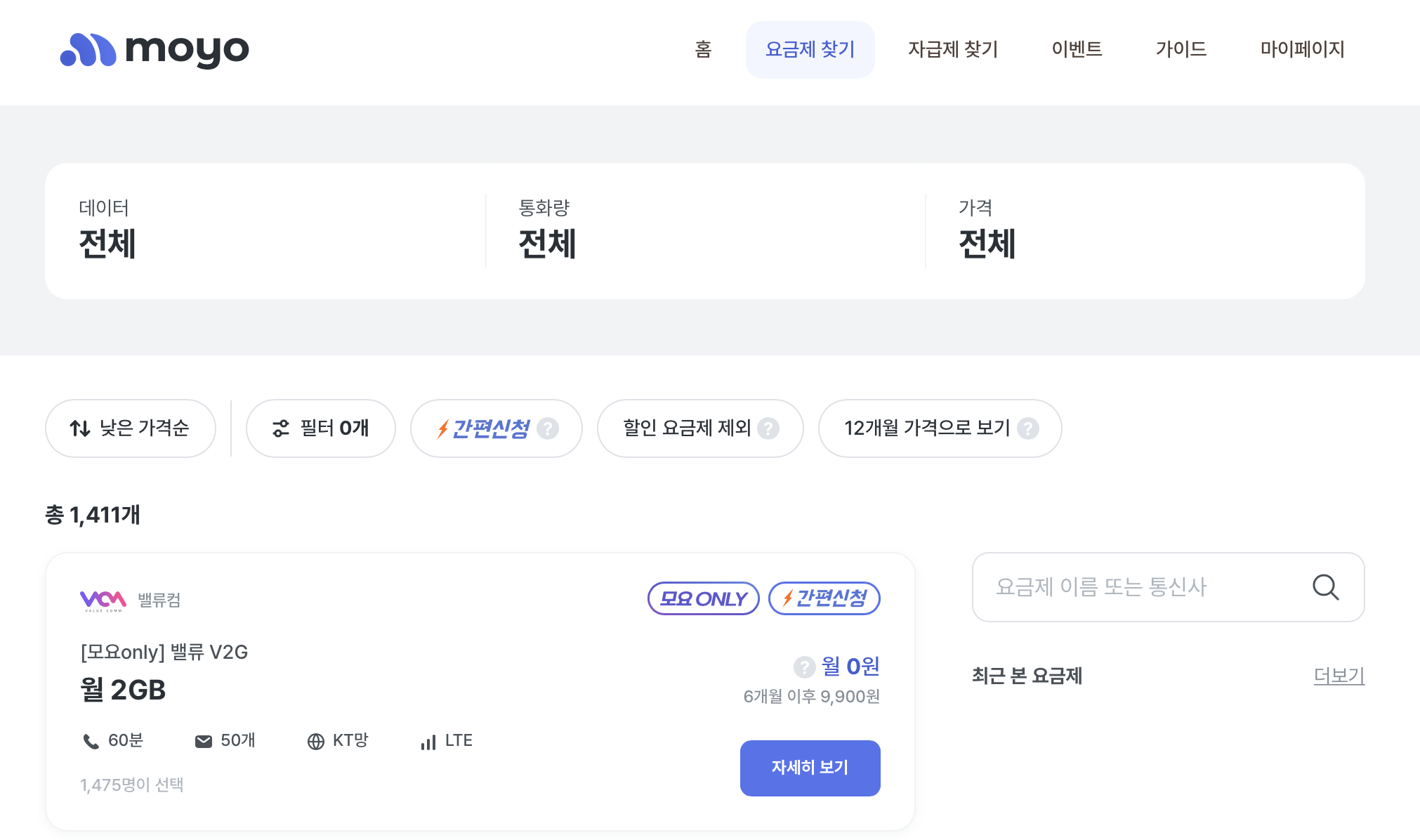 알뜰폰 요금제 비교 | 모요 (모두의 요금제)