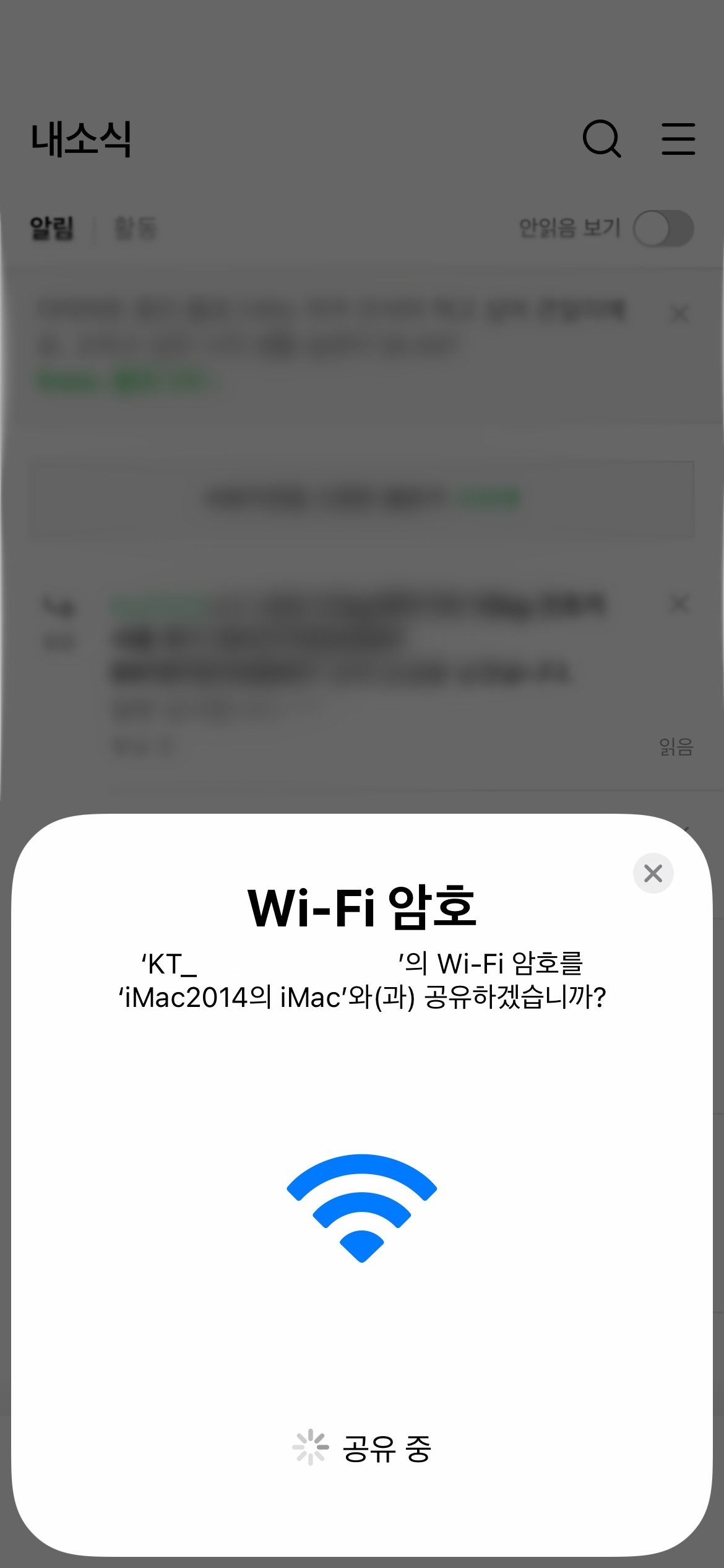 우연히 와이파이 비밀번호를 알려주려고 아이폰을 열었는데