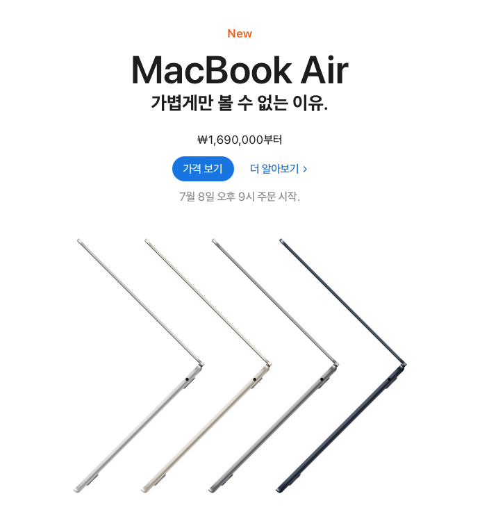 맥북에어는 오늘부터 주문시작이네