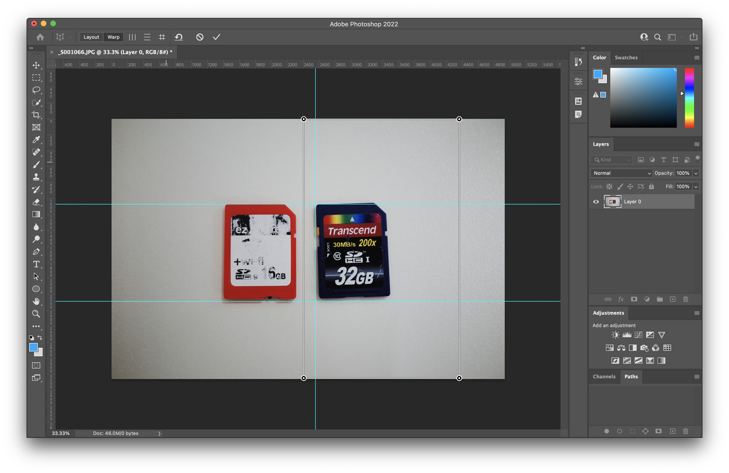 포토샵에서 가이드라인을 표시해보면 이미지의 기울어진 정도를 확인할 수 있다.