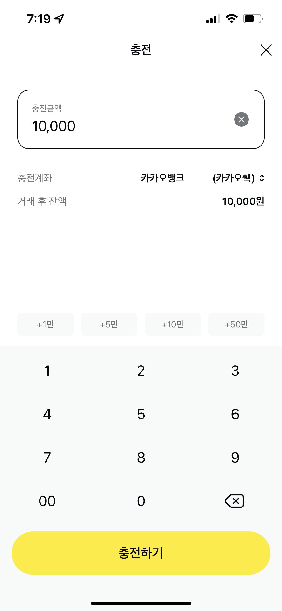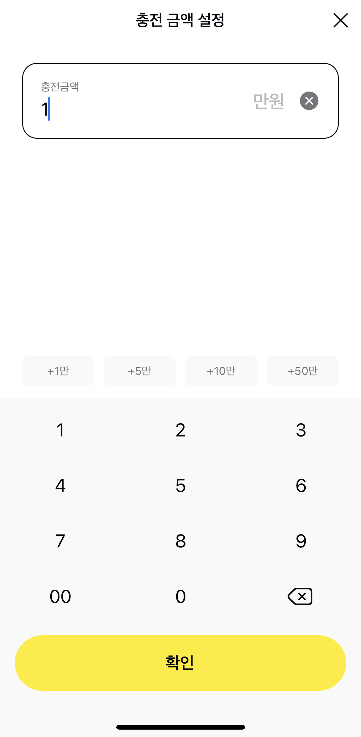 한번 등록한 1만원으로만 충전되는게 아니라 언제든지 원하는 금액으로 충전할 수 있다.