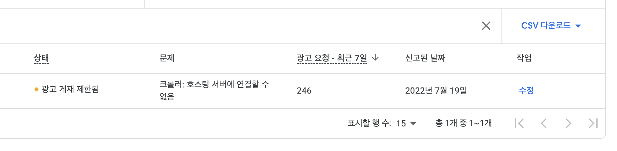 광고 게재 제한됨! 즉 모바일 페이지에서 광고가 정상적으로 노출이 안된다는 말이다.