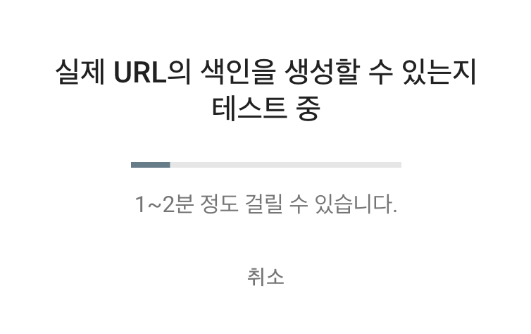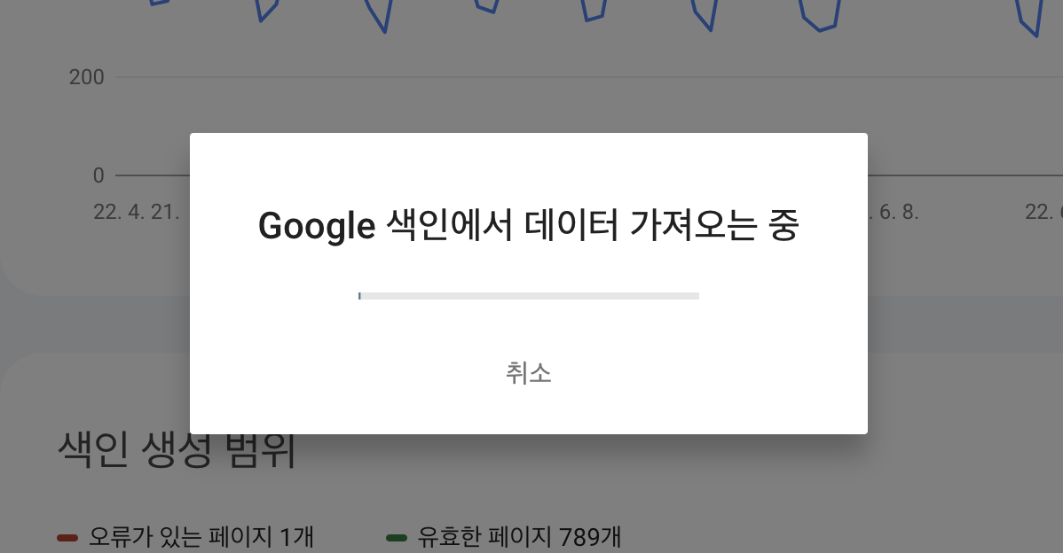 그럼 위와 같은 화면이 나오면서 google 색인에서 데이터 가져오는 중이라는 화면이 뜨고 검사를 시작된다.