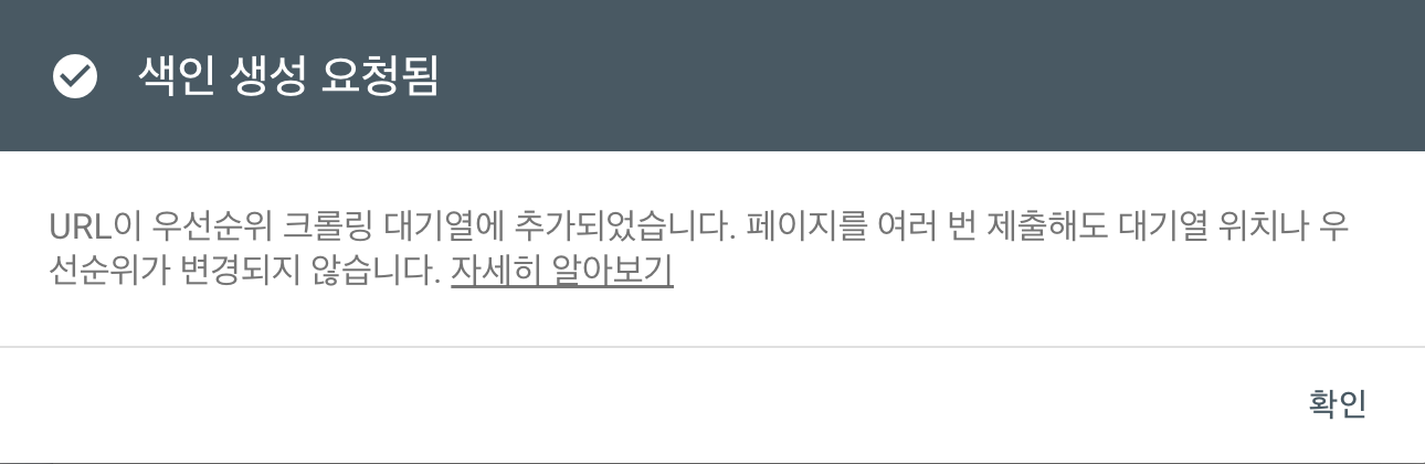 URL이 우선순위 크롤링 대기열에 추가되었습니다. 페이지를 여러 번 제출해도 대기열 위치나 우선순위가 변경되지 않습니다.