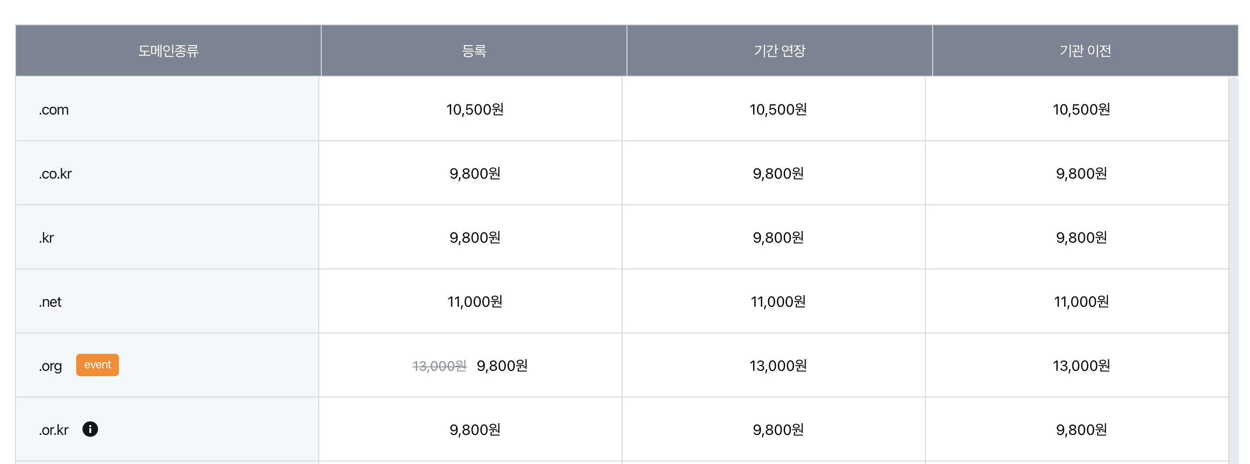 (호스팅케이알이 제일 저렴하다.)
