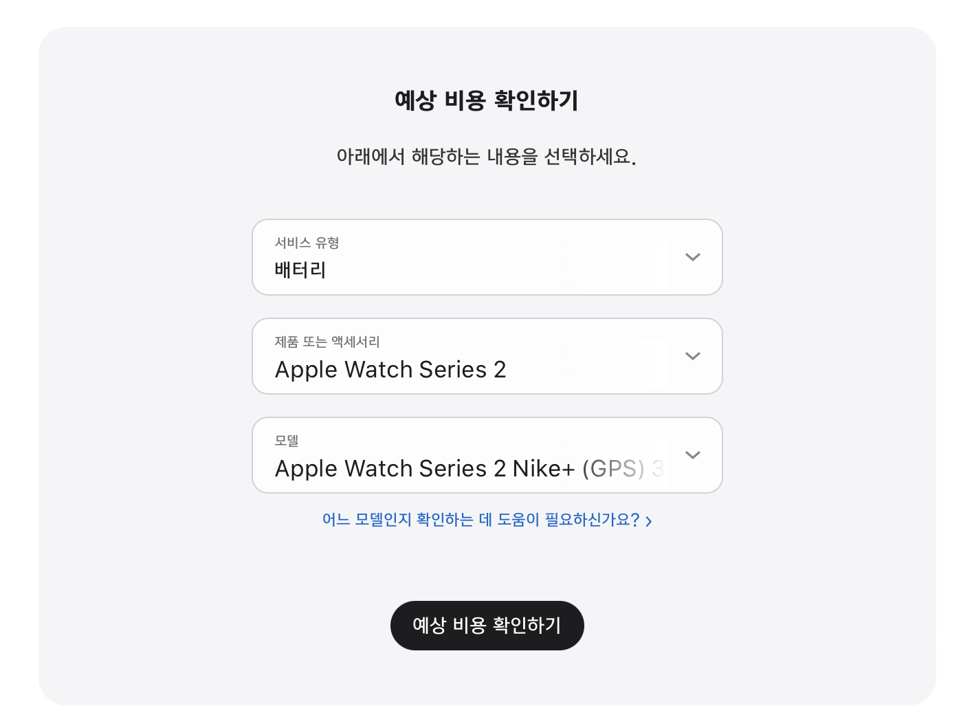 자신의 제품을 검색하면 예상 비용 확인하기 버튼이 활성화 된다.
