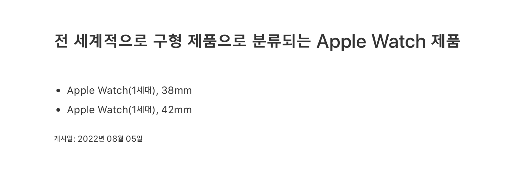 애플워치의 경우 1세대만 구형제품으로 분류된다고 한다.