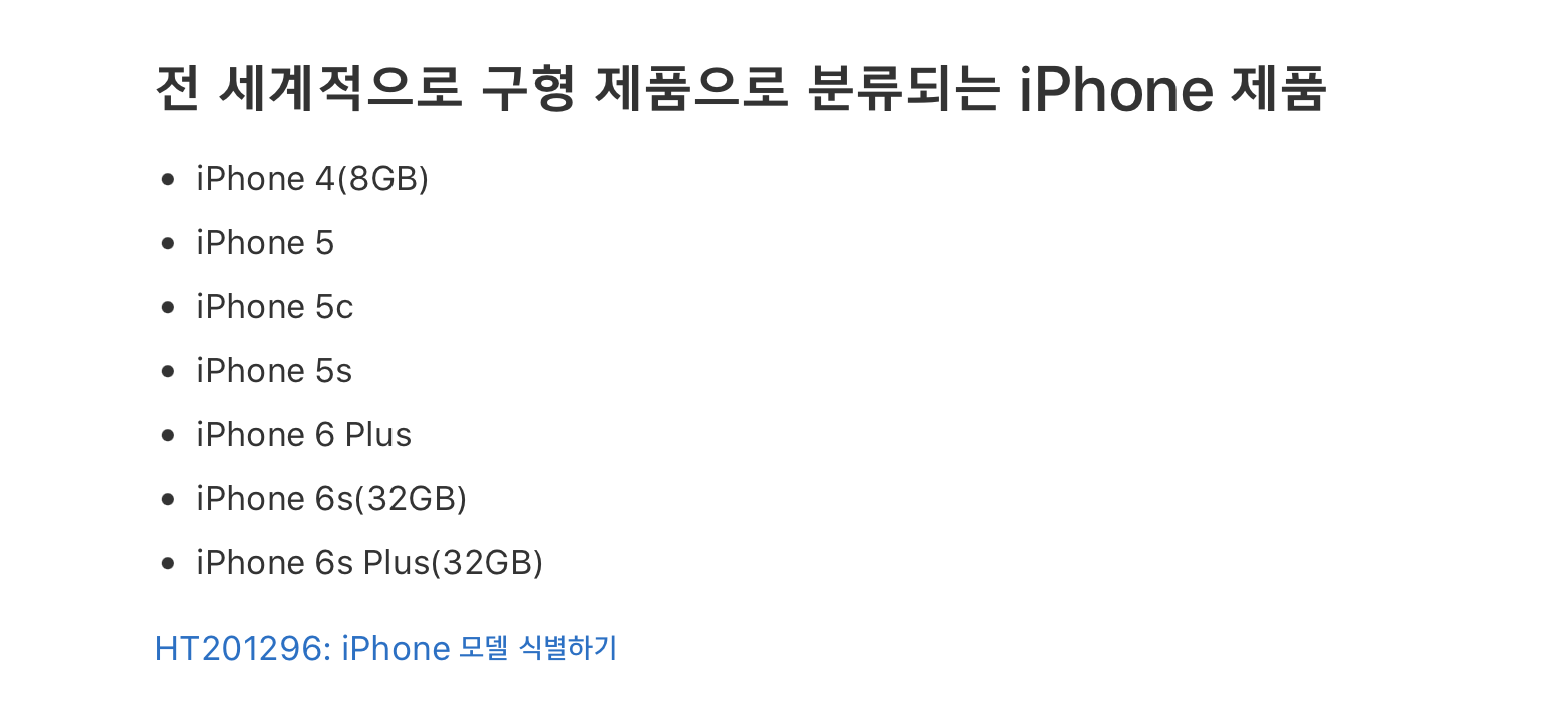 아이폰의 경우 6S까지 구형제품이라고 한다.