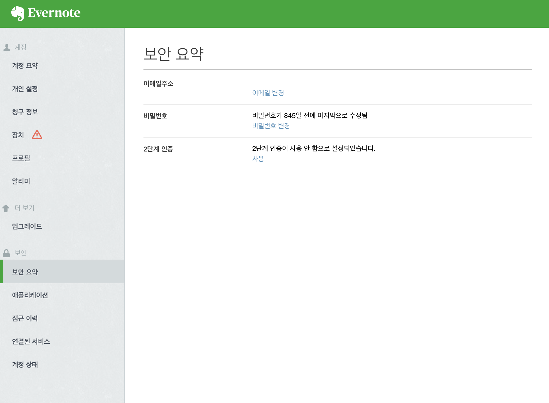 에버노트를 0원 요금제를 이용하고 있어서 보안에 신경을 안써주는 건가?!