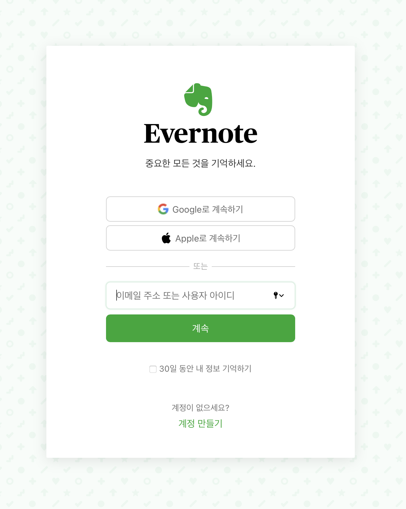 우선 에버노트 앱을 실행시키고 로그인을 했다.