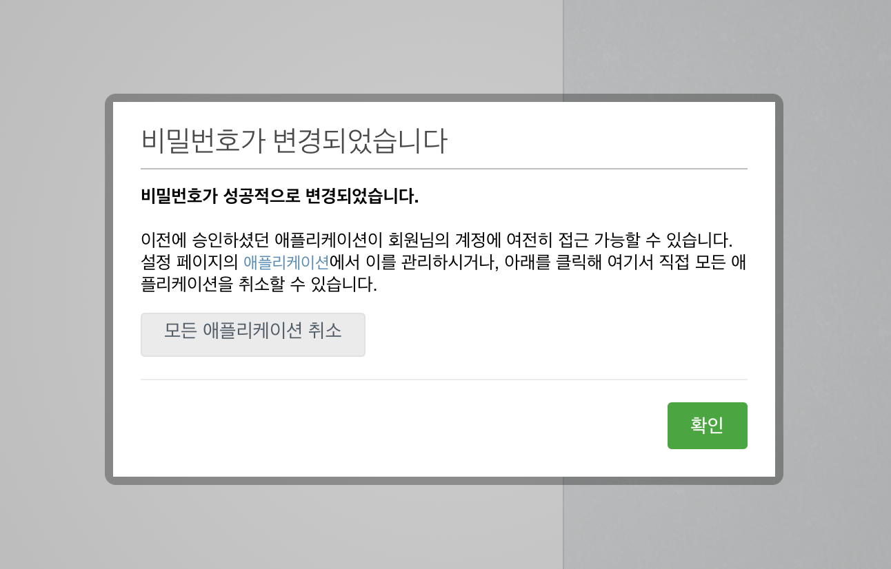 비밀번호 변경을 실행.