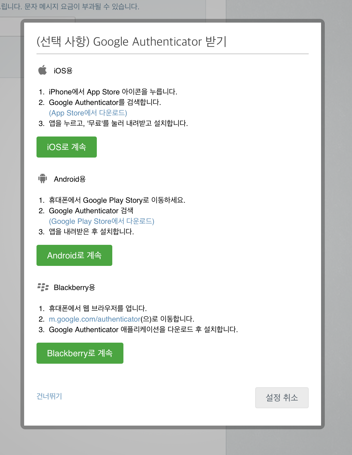 2단계 인증을 하다가 이런 화면이 나오는데