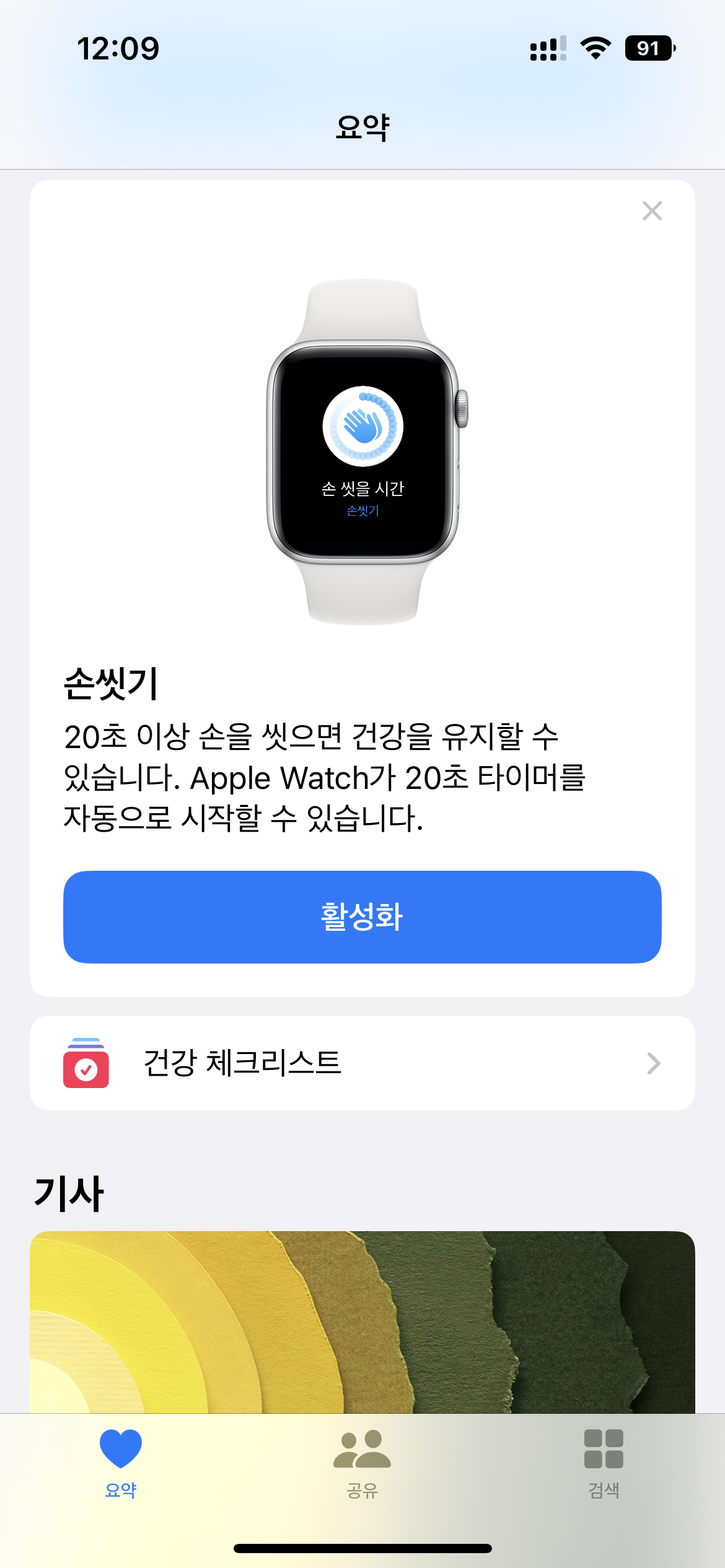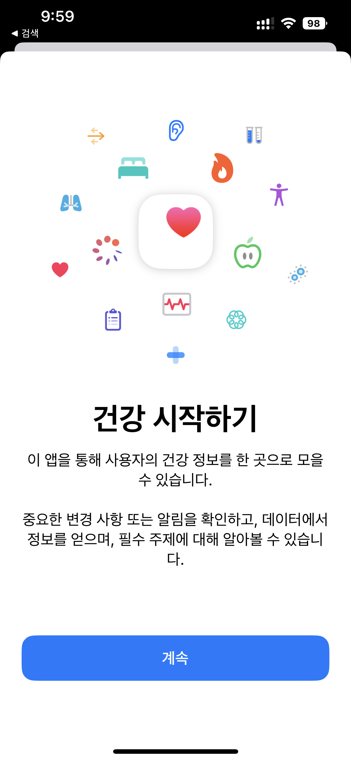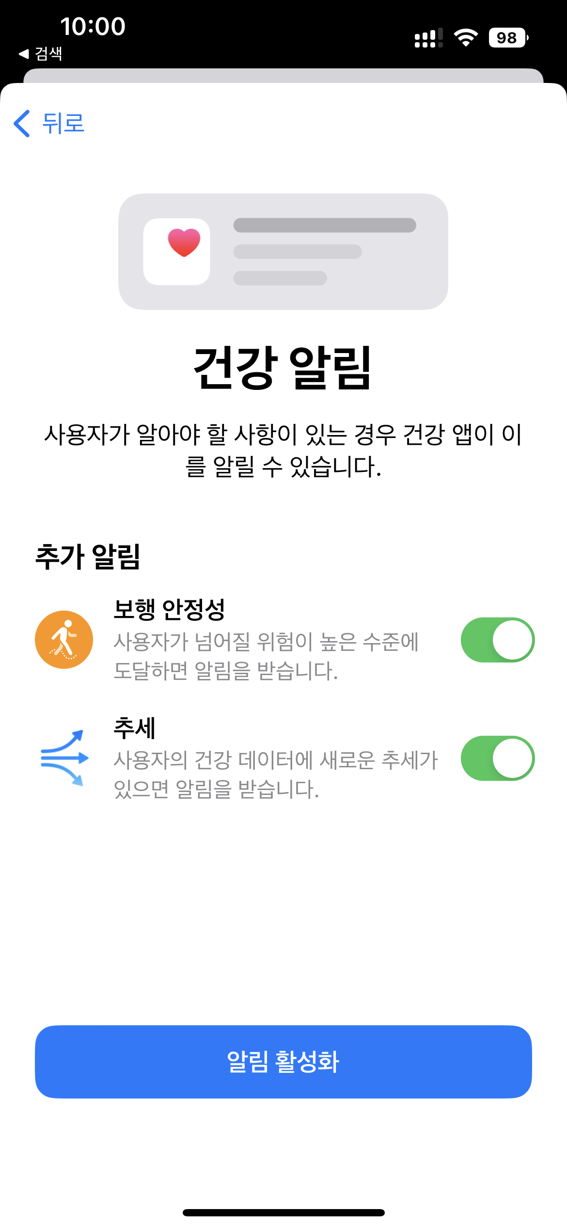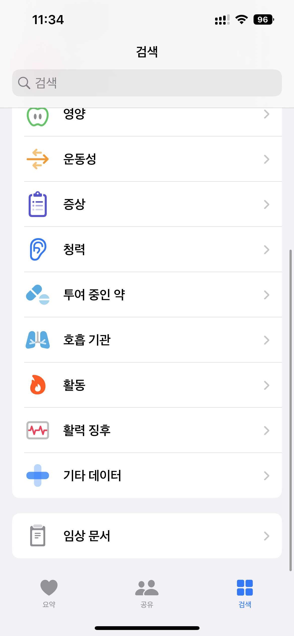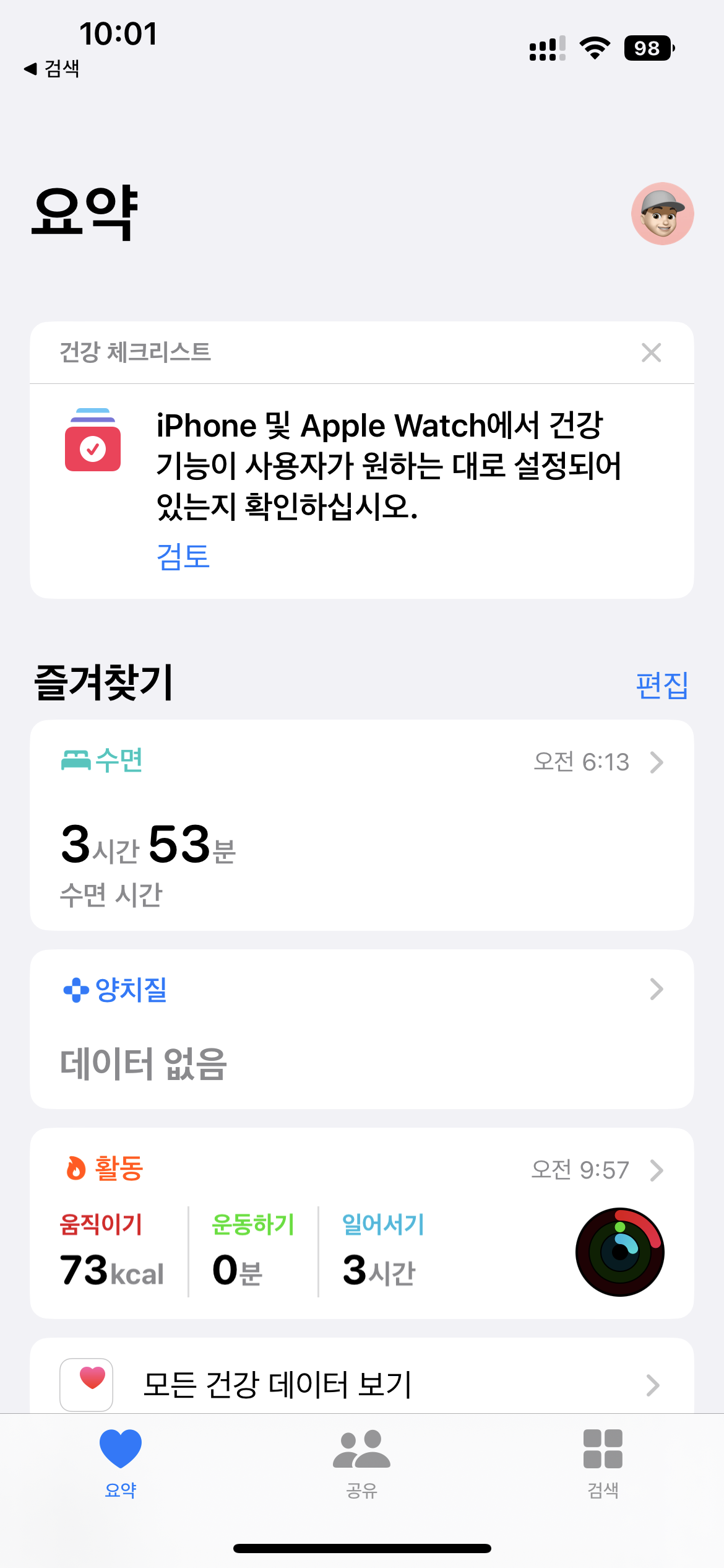 그래서 우선 아이폰에 있는 건강앱을 실행시켜봤다.