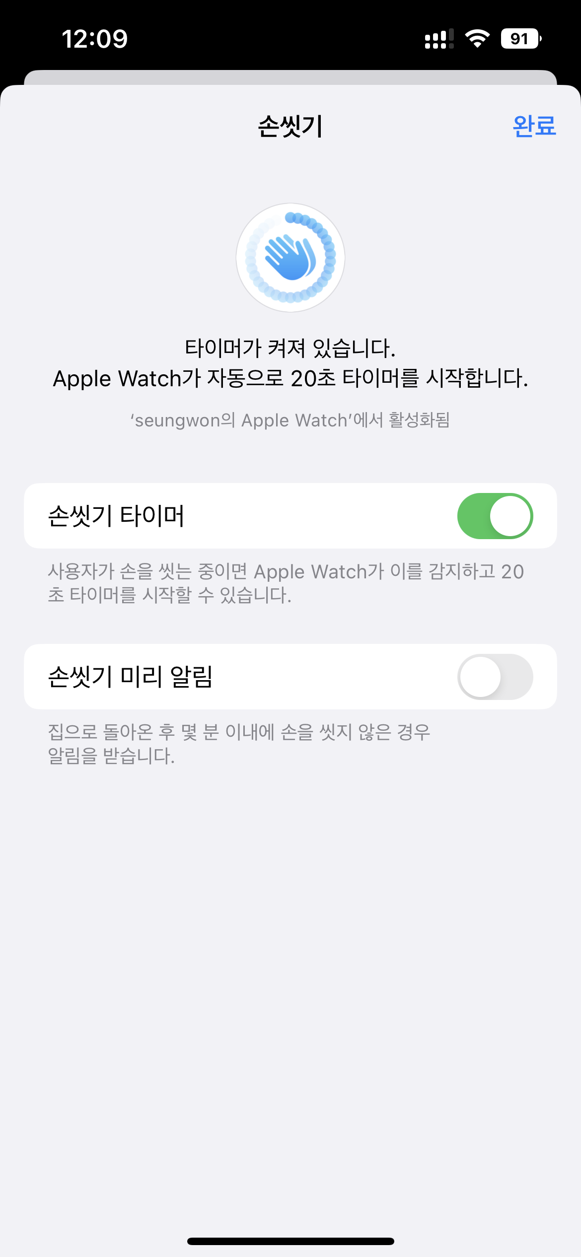 이건 무슨 원리로 되는건줄 잘 모르겠지만 손을 씻으니까 진짜 자동으로 20초 타이머가 실행되고
