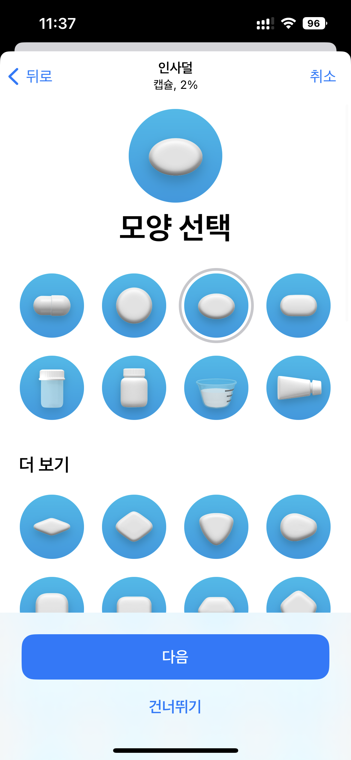 언제 알람을 설정할껀지 어떤 모양의 약인지를 디테일 하게 기록을 한다.