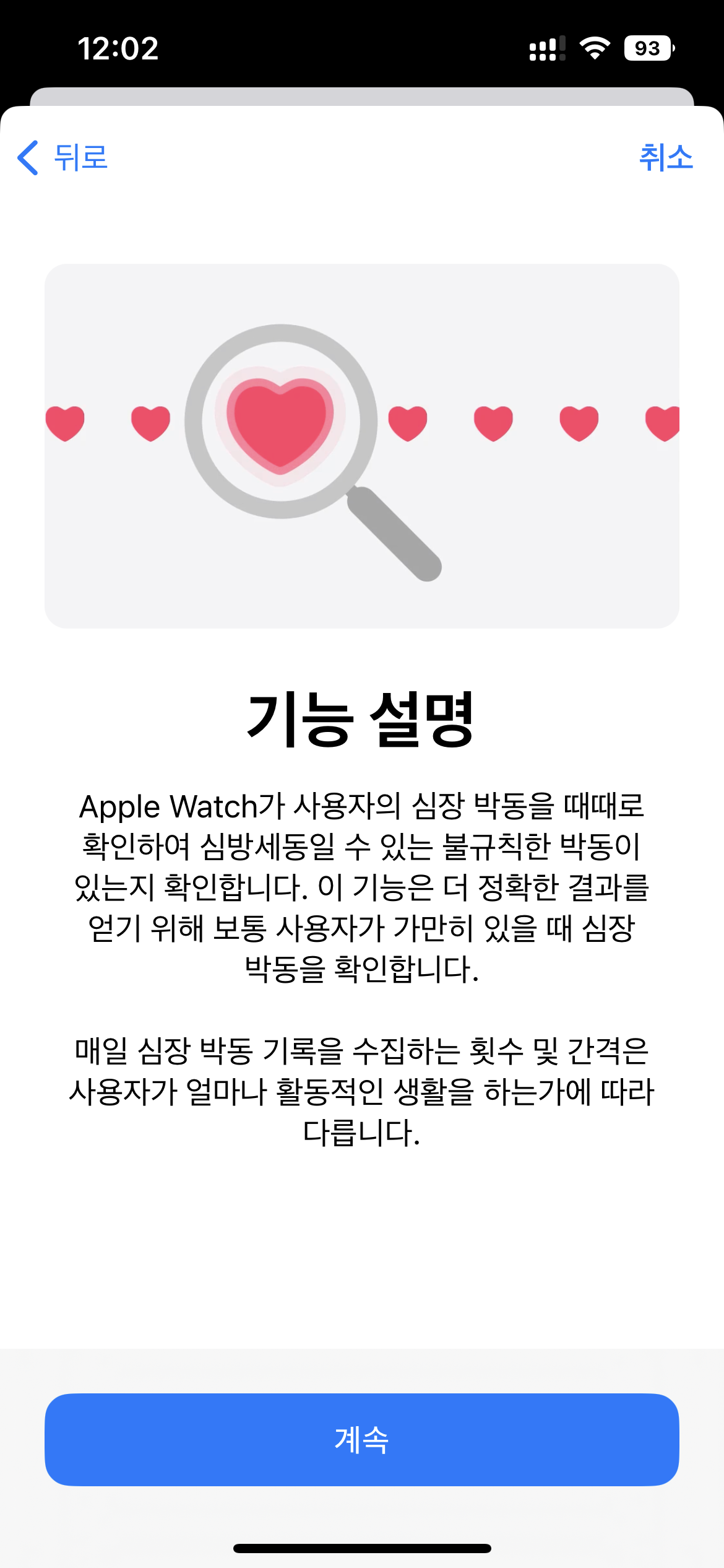 평소의 심장 박동을 측정하고 다른 결과값이 나오면 알림을 해주는 기능인가 보다.