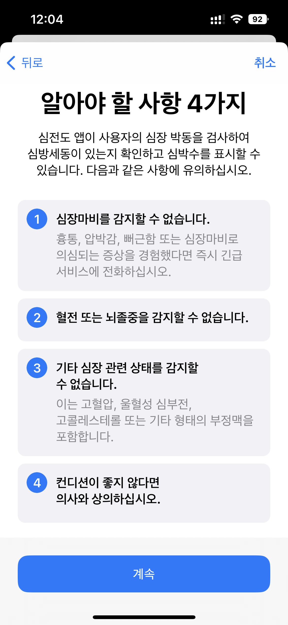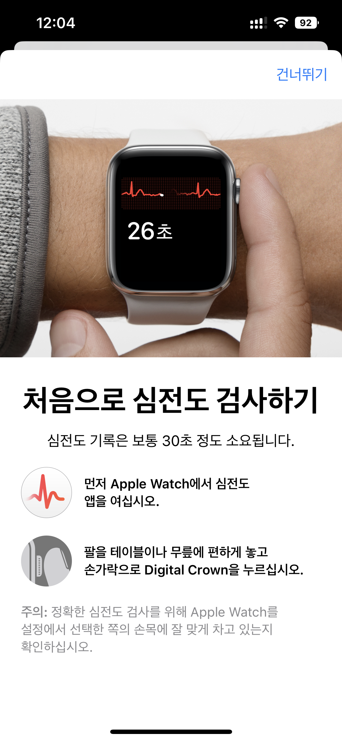 아이폰에서 심전도 검사하는 방법을 알려준다.