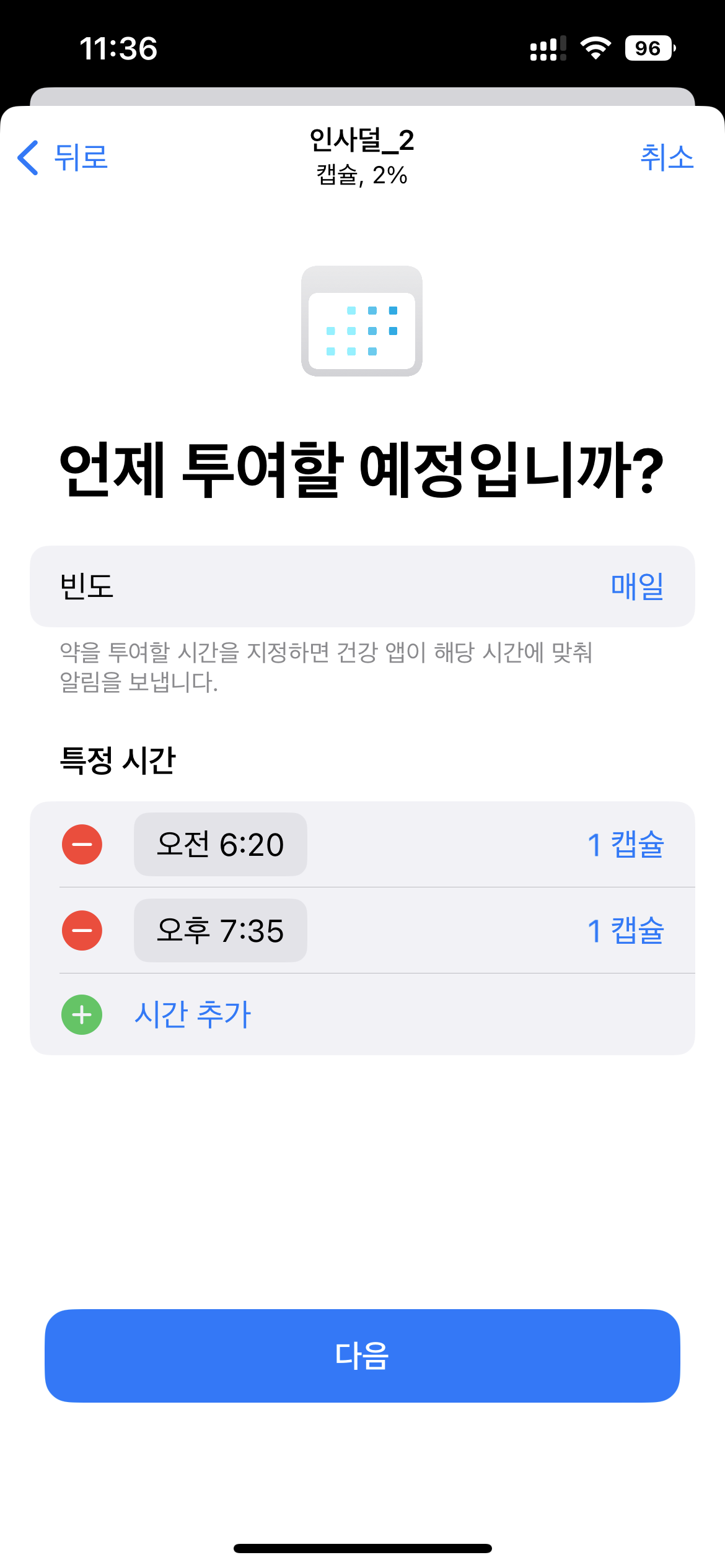 유용하게 쓸 것 같은 약 먹을 시간 정하는 기능