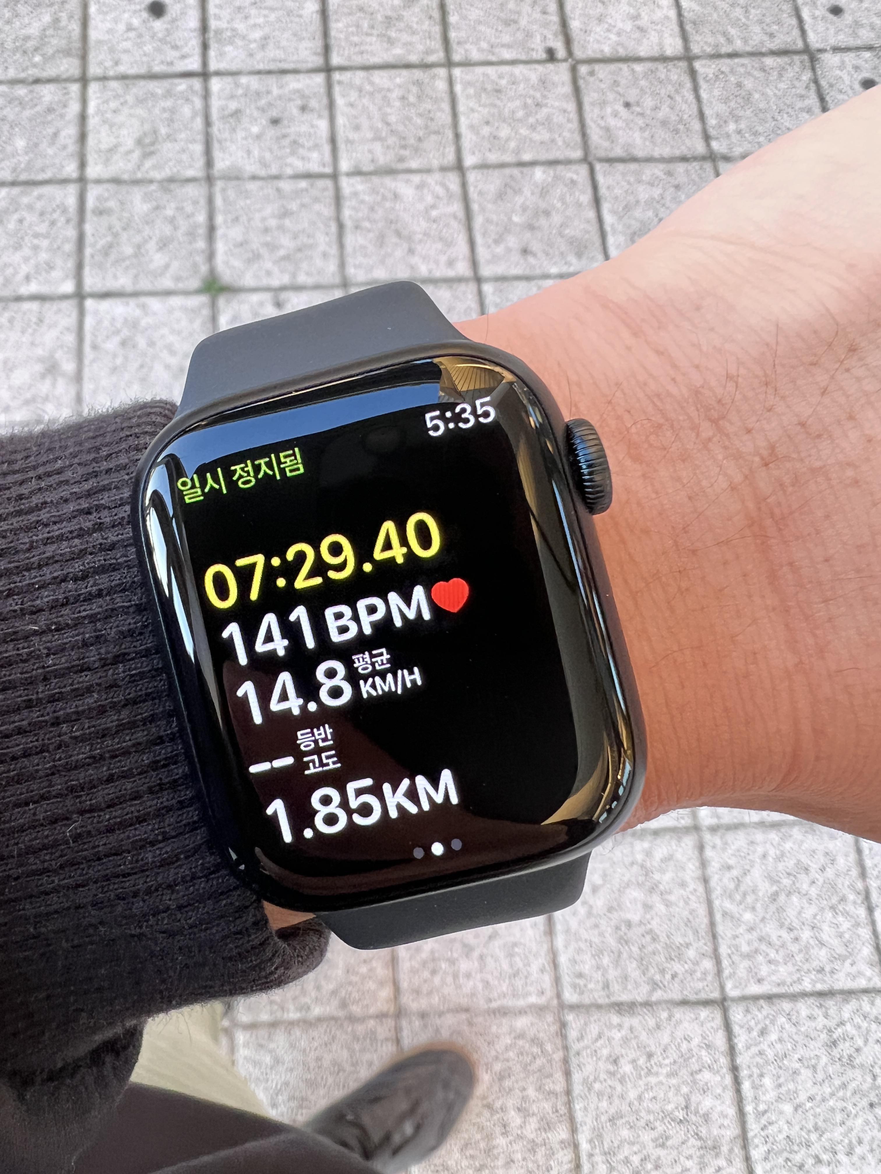 자전거를 타고 3-4분 정도 라이딩을 하자 애플워치에서 알람이 왔고