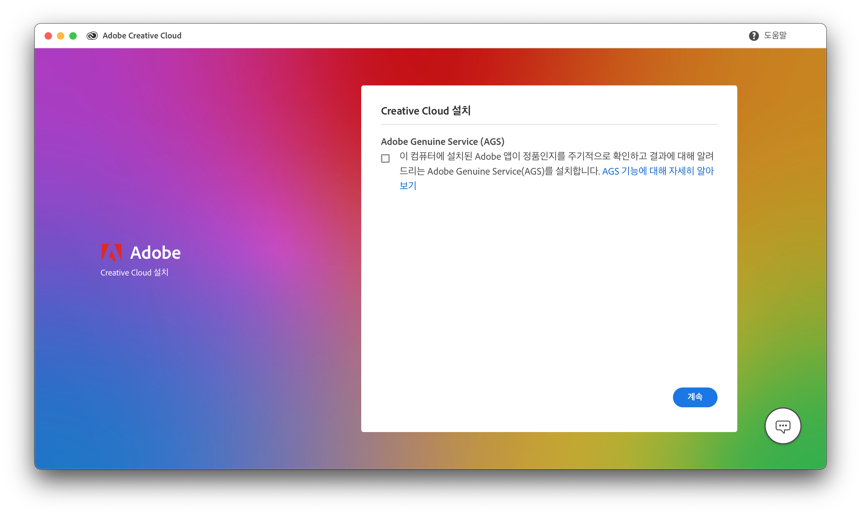 이 컴퓨터에 설치된 Adobe 앱이 정품인지를 주기적으로 확인하고 결과에 대해 알려드리는 Adobe Genuine Servie(AGS)를 설치합니다.