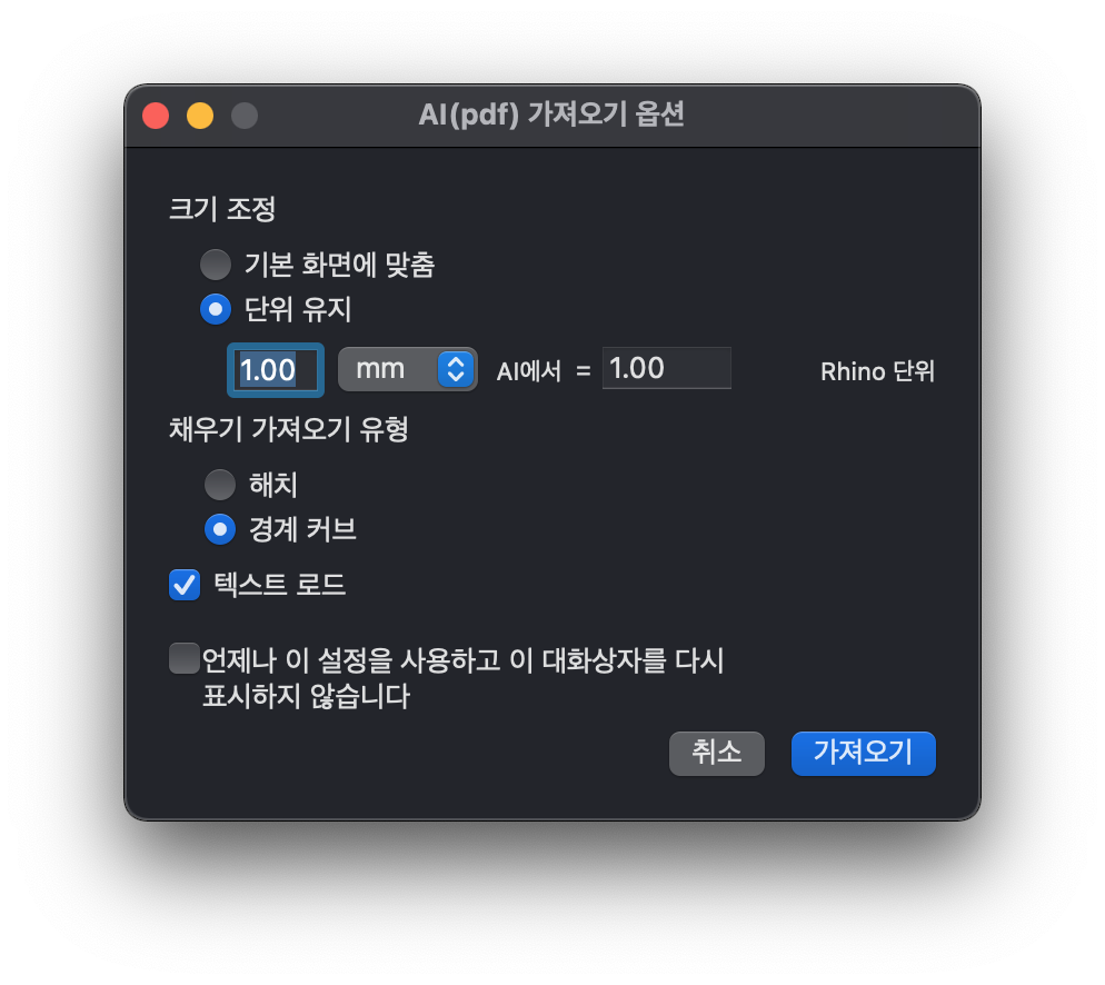 라이노에서 ai 파일(어도비 일러스트레이터) 가져오기