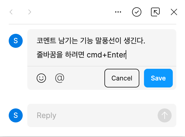 코멘트를 입력 후 줄바꿈을 하려면 cmd+Enter를 입력하면 된다.