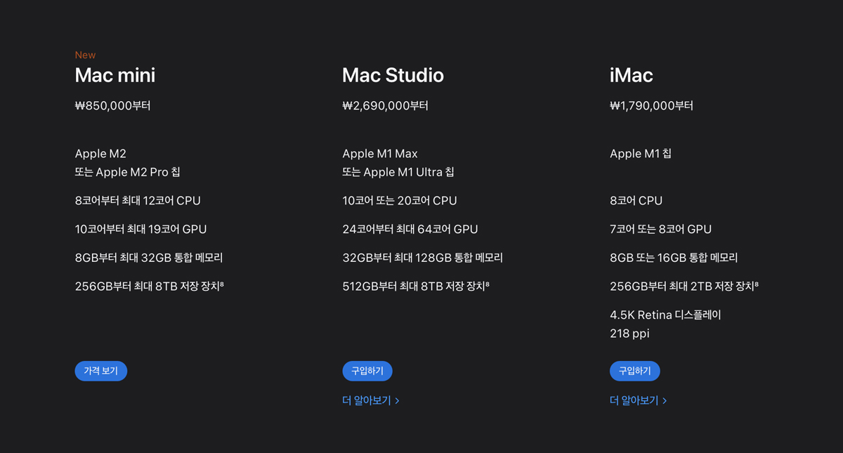 M2 맥미니 M1 맥스튜디오 M1 아이맥 가격 비교