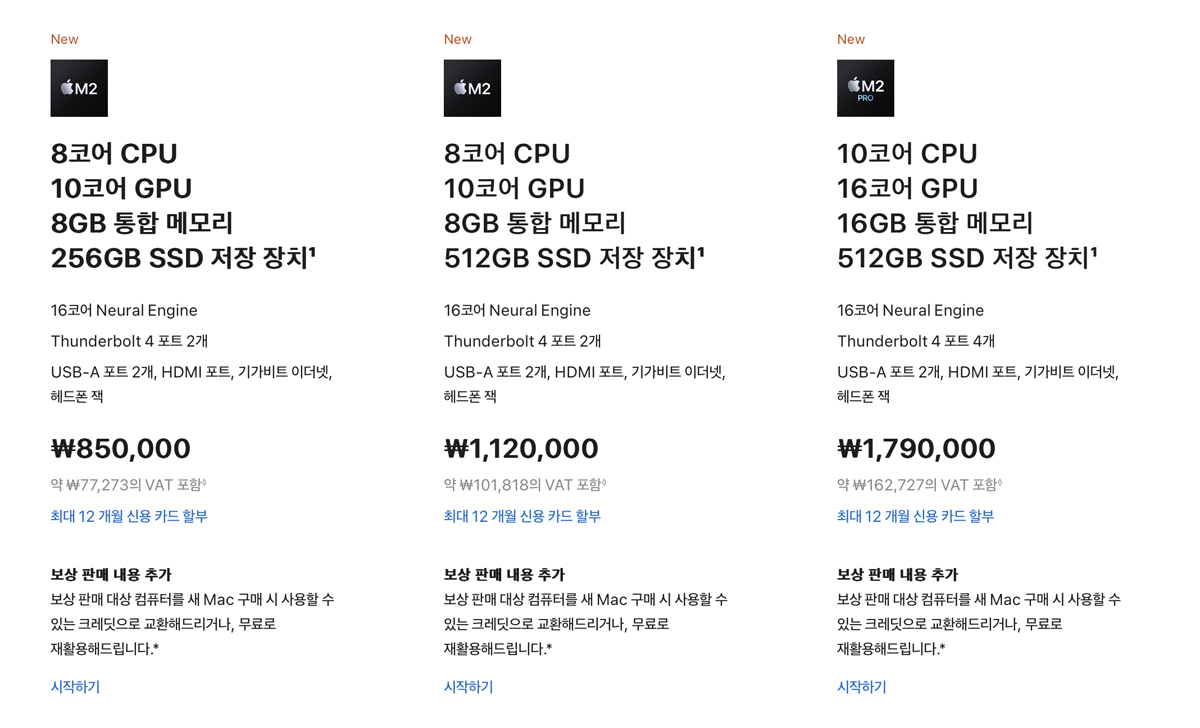 M2맥북프로14인치, M2맥북프로16인치, M2맥미니