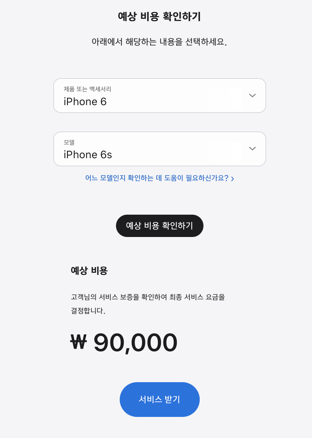 Apple에서 고객님의 제품을 수령한 후 점검을 거쳐 서비스 비용을 확정하게 됩니다. 화면에 금이 간 경우와 같이 배터리 교체를 진행할 수 없을 정도로 iPhone이 손상된 경우, 배터리 교체를 진행하기 전에 해당 문제를 먼저 해결해야 합니다. 경우에 따라 수리와 관련한 비용이 발생할 수 있습니다.