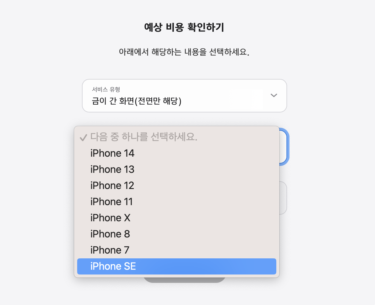 '제품 또는 악세사리' 에서 아이폰6, 아이폰7, 아이폰8 처럼 버젼을 먼저 선택하면