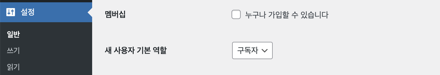 관리자 페이지 [설정]-[일반]에서 '누구나 가입할 수 있습니다'를 체크하고