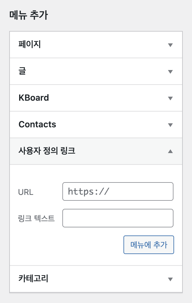 [테마]-[메뉴]에 있는 사용자 정의 링크에