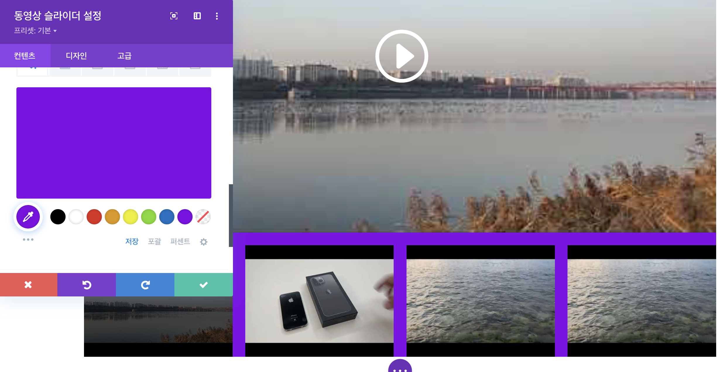 divi theme 동영상 슬라이드 설정하는 방법