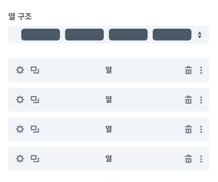 각 열에 왼쪽에 있는 톱니바퀴를 클릭해서 하나하나 셋팅해줘야 한다.