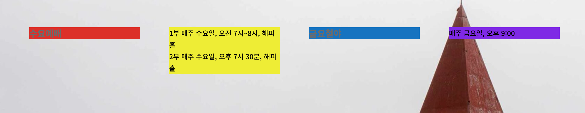 4개의 열에 각각 CSS코드를 삽입해 줘야 한다.