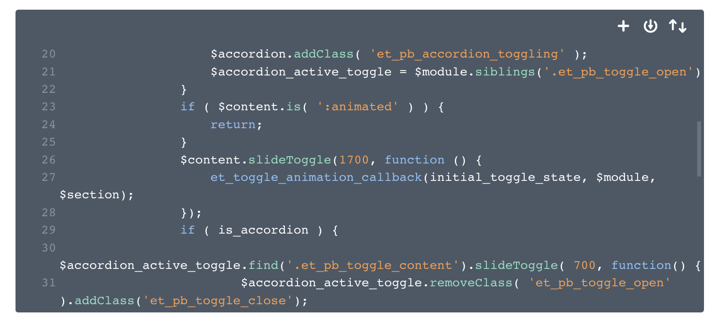 divi theme 에 있는 아코디언 메뉴 열리는 속도를 조절하는 방법