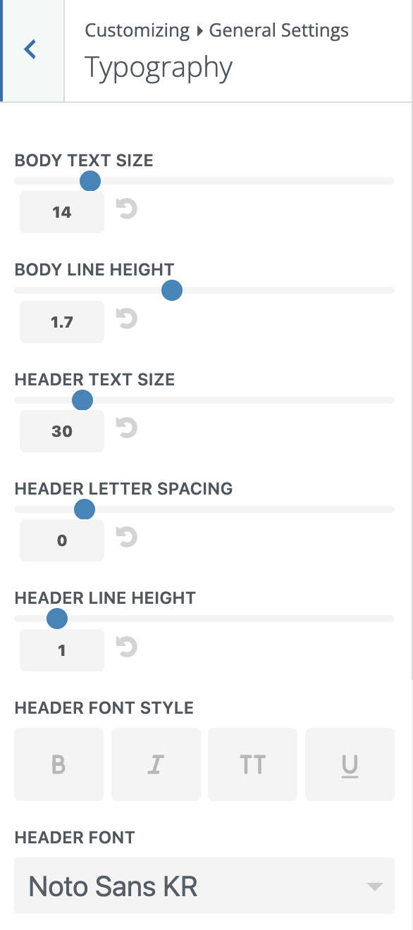 여러가지 기본값을 변경할 수 있는 부분이 많지만 기본 서체의 경우
