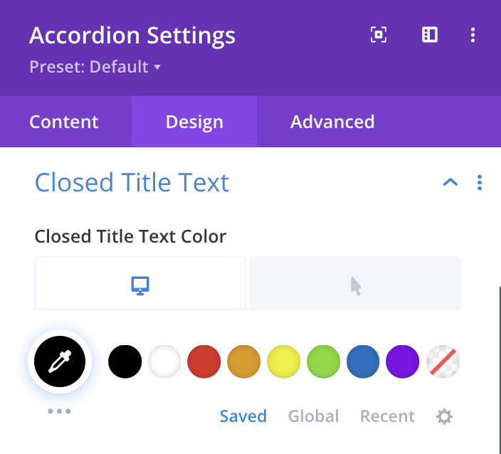 아코디언 메뉴에 마우스를 올리면 서체크기와 색상을 변경하려면