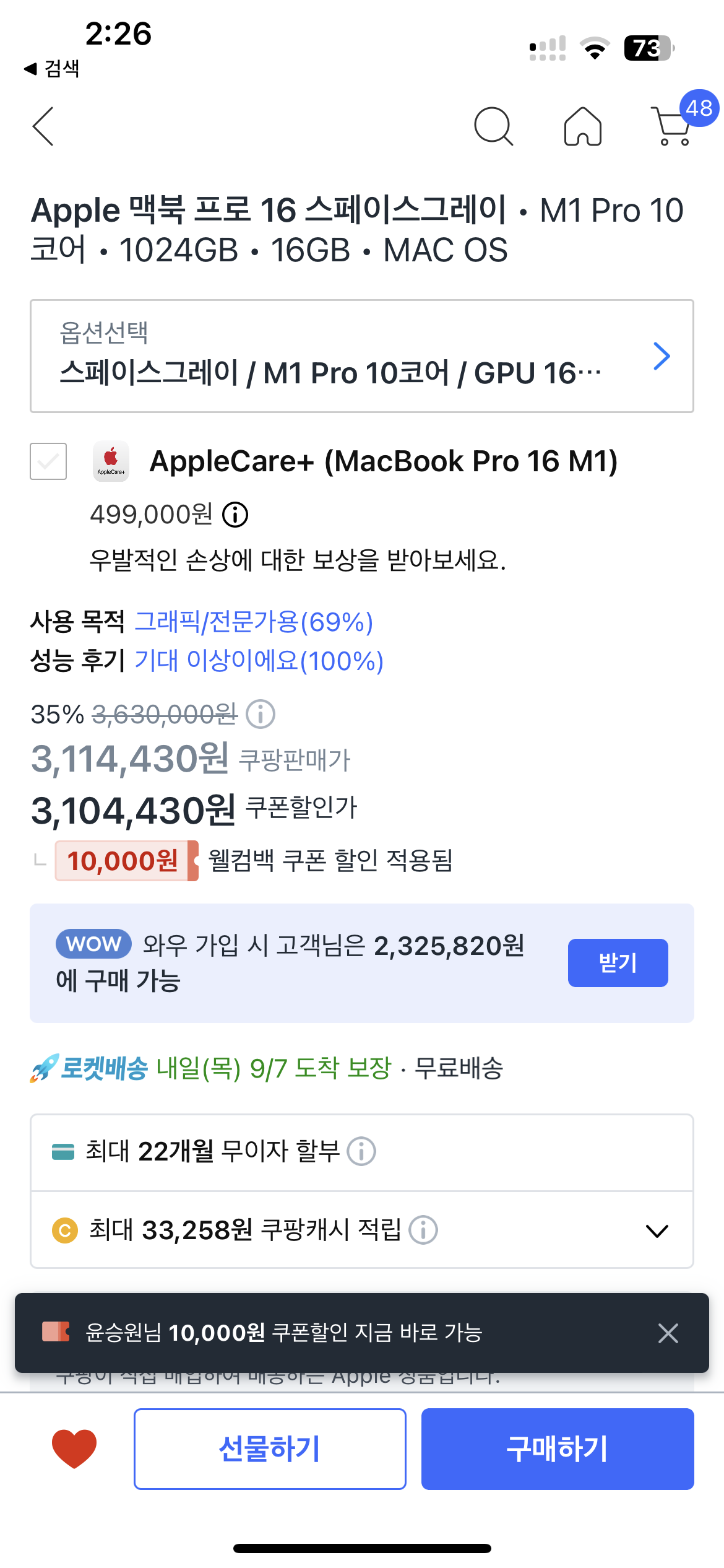 맥북프로 16인치 모델이 이보다 저렴할 수는 없다!