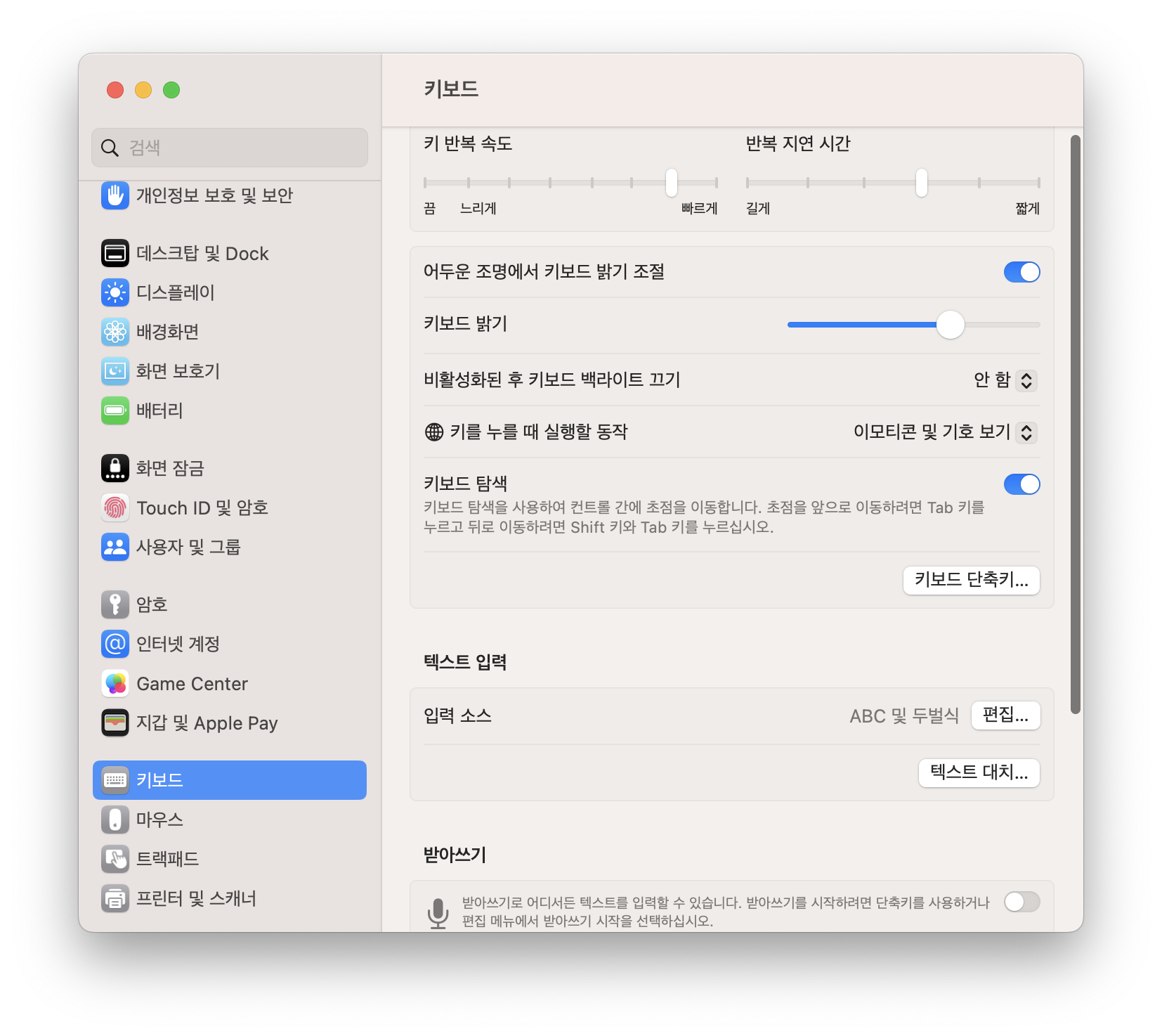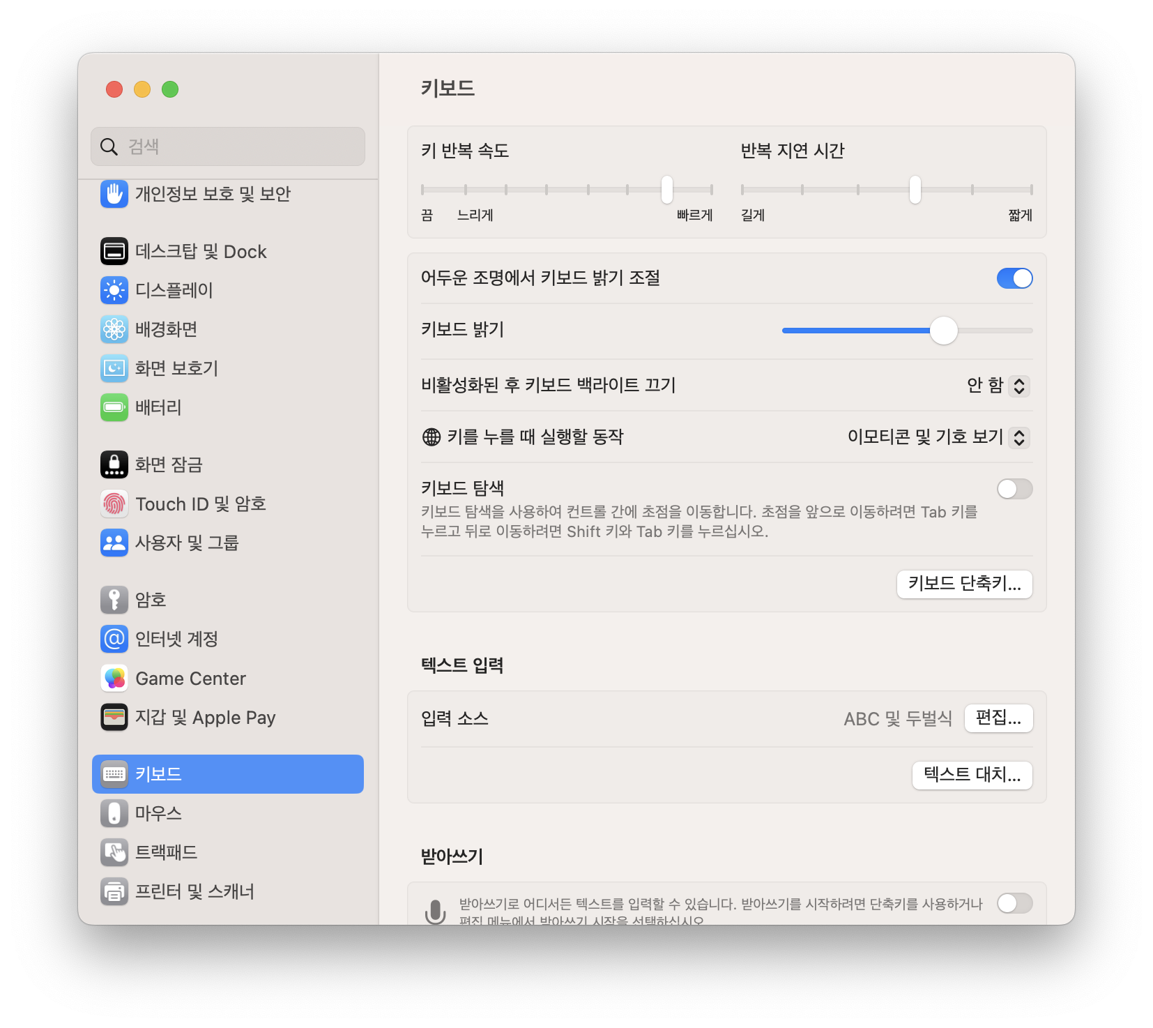 대부분 맥용 프로그램은 Tab키로 저런 옵션을 이동하면서 선택할 수 있는데