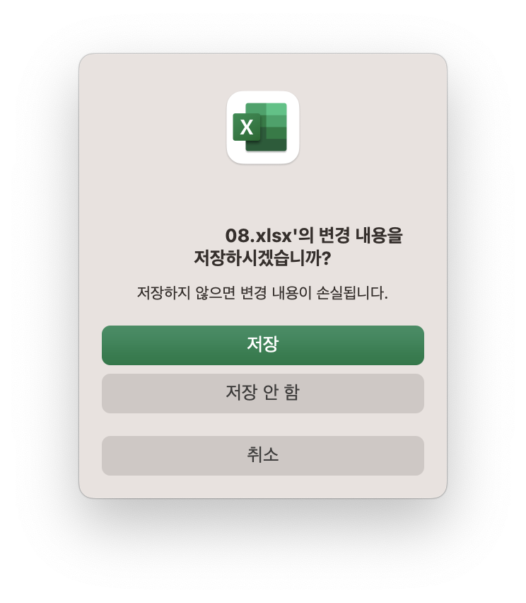 엑셀을 사용하면서 파일을 닫을 때 항상 아래와 같은 알람창이 뜨는데