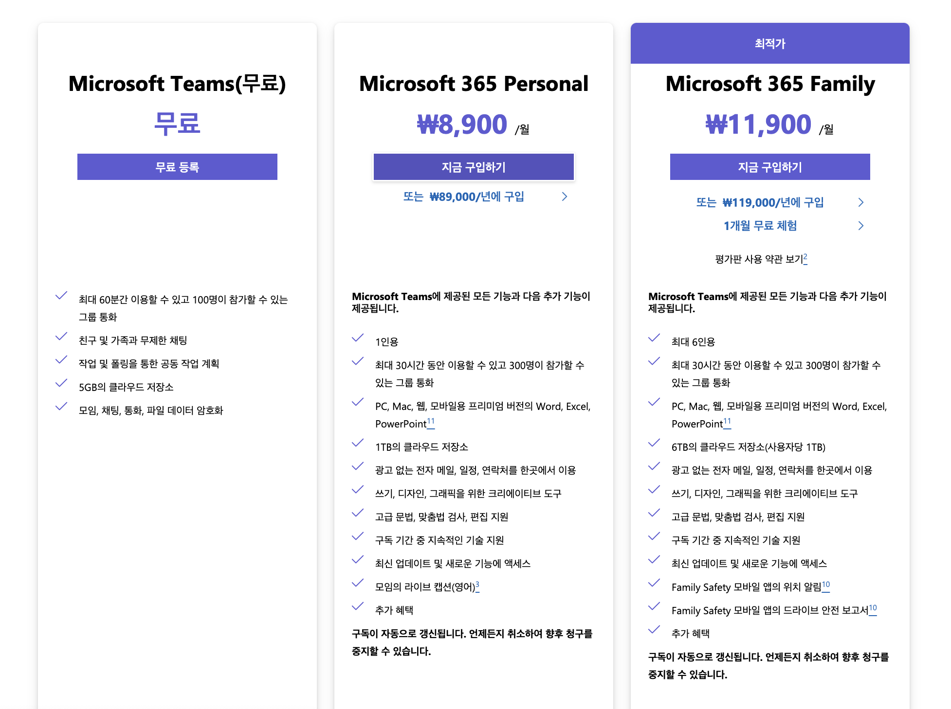 유료버전을 이용한다면 월 8,900원으로 ms오피스 전 제품군을 이용할 수도 있다.