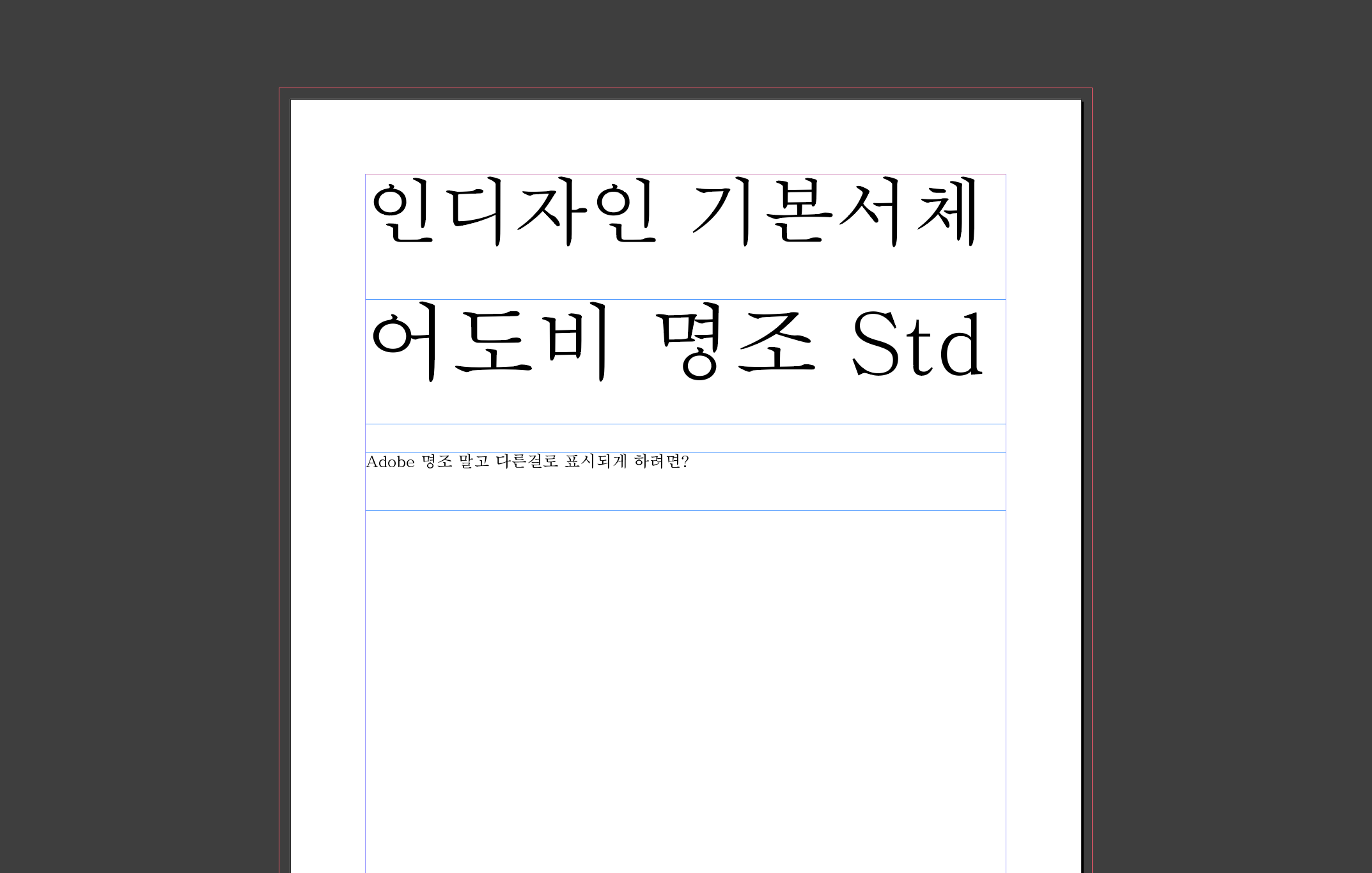인디자인의 경우 '어도비 명조 Std'서체가 기본 디폴트로 잡혀져 있다.