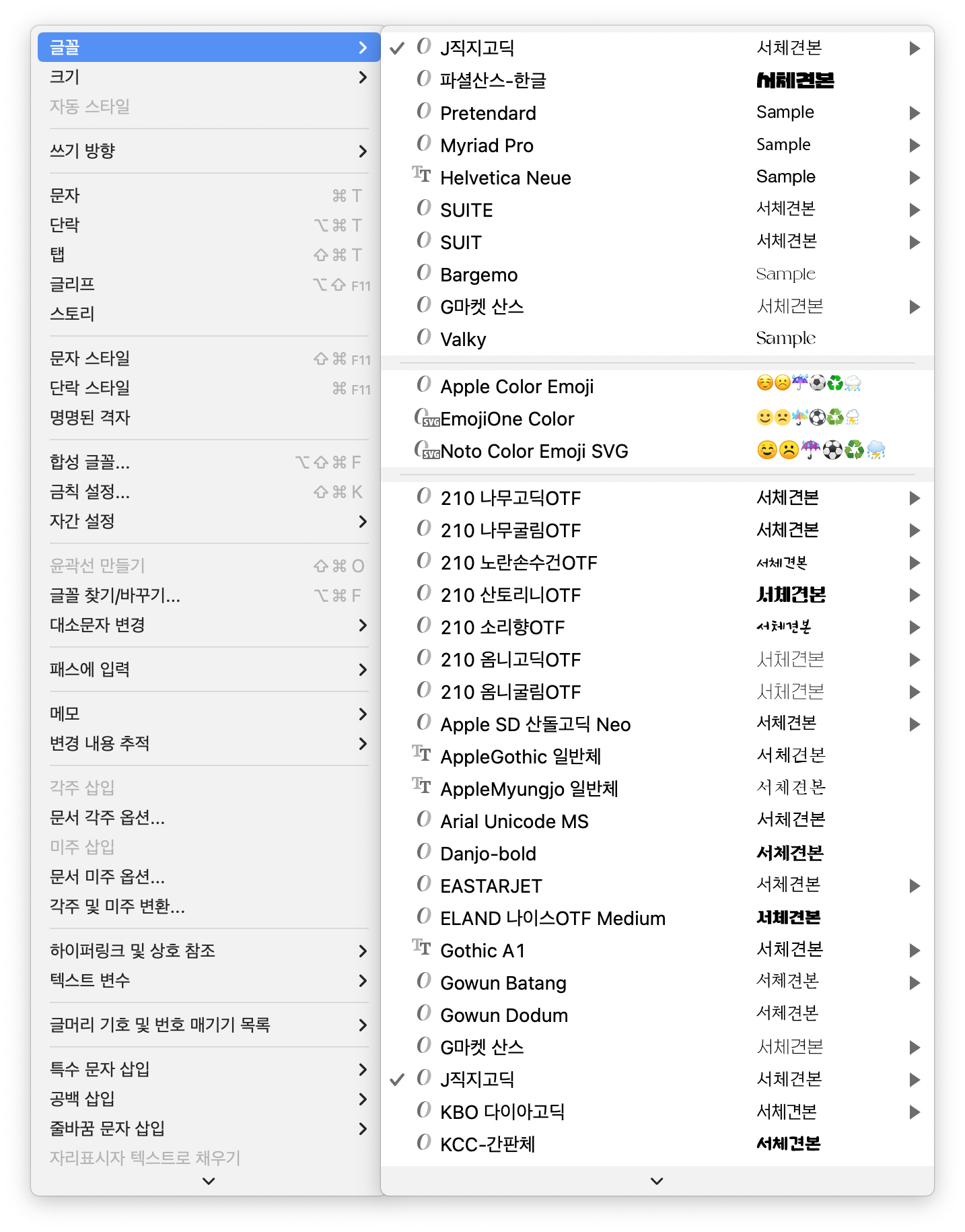 방금 선택한 서체가 기본 서체로 셋팅이 된다.