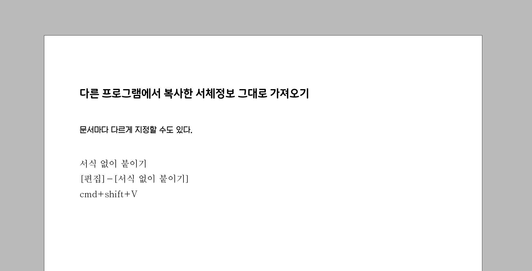 복사한 서체의 크기나 종류를 그대로 붙여 넣고 싶을때도 있고 텍스트만 붙여 넣고 싶을때가 있는데