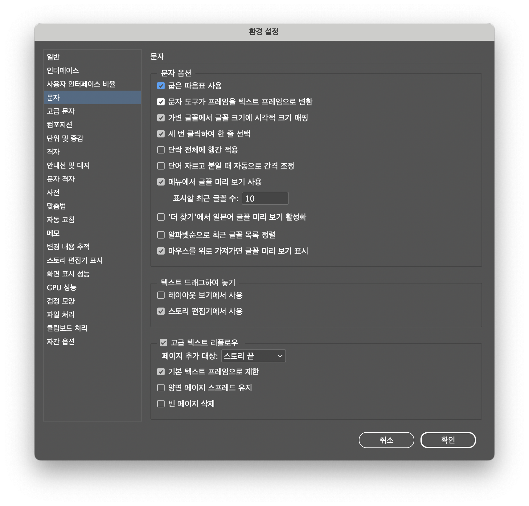 인디자인 굽은 따옴표 사용 설정하기